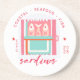 Whimsical Sardines Coastal Beach Pink Coaster