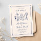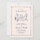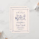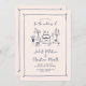 This wedding invitation is based on the popular hand-drawn trend that features French or Italian style food and beverages in a whimsical, doodle, scribble style. This design is ideal for a laid back, casual wedding in a garden. It features charming hand drawn illustrations of a vase of flowers, bottle of champagne, wedding cake, candle holder and glasses of wine.