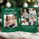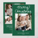 Share joyful holiday greetings with this whimsical Christmas card featuring “Merry Christmas” in white script on a classic green background above your favourite square family photo. A white bow accent adds a trendy, festive touch, with space below to personalise with your family name and year. The back displays a 4-photo collage with room for your holiday message, creating a heartfelt way to share memories and joy.
