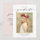 Announce your graduation to family and friends with this customisable graduation card. It features black whimsical calligraphy and a faux gold glitter photo frame. Personalise this gold glitter graduation announcement card by adding your photo, name and school name. This script photo graduation announcement card is perfect for high school or college graduations.