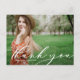 Thank you! Send thanks to family and friends with this landscape photo thank you postcard. It features whimsical script typography. Personalise by adding names, date, address, message and other details. This calligraphy overlay thank you postcard is perfect for weddings, graduations and so much more.