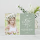 Whimsical Script Sage First Holy Communion Photo Thank You Card