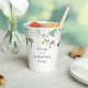 Secret Garden Wedding is a whimsical modern wedding paper cup design with wildflowers and a bird on a white background.