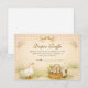 A charming storybook-style baby shower design featuring a sweet watercolor goose standing beside a nest filled with pastel eggs. Delicate spring flowers and soft greenery create a gentle countryside scene, while a blush bow and sage gingham background add a cozy cottagecore touch. The vintage illustration style and soft pastel palette give this design a whimsical nursery feel, perfect for a playful and heartwarming baby celebration.