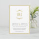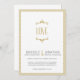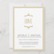Simple and sweet vintage-style gold wedding invitation has a whimsical "LOVE" graphic and fun pin-striped border. Matching wedding collection: