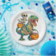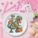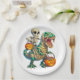 Whimsical Skeleton Riding Mummy T-Rex Halloween Paper Plate