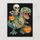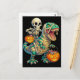 Whimsical Skeleton Riding Mummy T-Rex Halloween Postcard