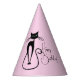 Whimsical Skinny Black Cat Pink Happy Birthday Party Hat