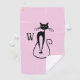 Whimsical Skinny Black Cat Pink Initial Golf Towel