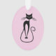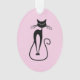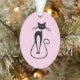 Whimsical Skinny Black Cat Pink Ornament