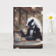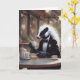 A whimsical Skunk business man having coffee in an outdoor cafe