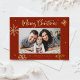 Merry Christmas! Send warm wishes to family and friends with this gold foil Christmas card. It features whimsical snowflakes and modern calligraphy. Personalise this photo Christmas card by adding your own details. This snowflakes Christmas photo card is available in other colours and cardstock.