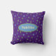 Sweet celestial throw pillow features moons and stars in shades of green and blue on purple background. Personalise with name or monogram