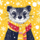 Cute animal wearing a red scarf featuring a whimsical stoat