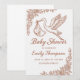 Welcome guests in style with these rustic baby shower invitations, featuring a whimsical hand-drawn stork illustration carrying a sweet bundle of joy. Surrounded by delicate floral accents and vintage-inspired copper script, these invitations capture the warmth and charm of a timeless celebration.