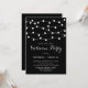 Elegant and whimsical welcome party invitation featuring white hanging fairy lights on black background. This invitation is perfect for nautical-themed and outdoor events.