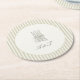 Whimsical Stripe Green Wedding Round Paper Coaster