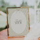 Designed to coordinate with the full Whimsical Stripe Green wedding suite, this table number adds a cohesive and decorative touch to your reception tables. The minimalist layout ensures the number is clearly visible while the soft stripes add a dash of personality and lightness to your table setting.
