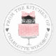 Pretty striped floral French inspired cake cake with "from the kitchen of" , baked goods round labels, with classic decorative open face typography. Just add your name. An eye catching style for your baked goods. You may use the simple design tool to change font style and colour of fonts.