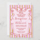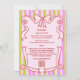 Customize this whimsical, trendy, joyful all-in-one "Whimsical Stripes Wavy Frame Bow Wedding Invitation", featuring a playful hand-drawn red wavy frame adorned with a charming bow. Set against a joyful pink and citrus-green pinstriped background, the front showcases the wedding invitation, while the reverse includes the details and RSVP for a cohesive, stylish presentation. For alternative color options or additional customization, please get in touch with the store designer for assistance.