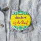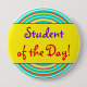 This whimsical, positive button design features the message "Student of the Day!". A button like this could perhaps be used to recognise a student who has done well. [~Z0000317]