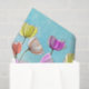 This tissue paper is a celebration of artistry and elegance. It features a captivating print of whimsical flowers, each meticulously designed in vibrant hues of purple, yellow, and coral. The flowers dance against a serene aqua backdrop, their delicate stems sketched with finesse to breathe life into the blossoms. The detailed sketch lines of each flower add an artistic touch, making the tissue paper more than just an accessory. It's a piece of art that brings a touch of nature's splendour into your daily life. The soft colour palette and the contrasting aqua blue background create a mood of calmness and serenity. This tissue paper is not just for use, but for admiration too. It's where functionality meets art, adding a dash of colour and charm to your everyday moments.