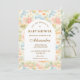 A whimsical watercolor design featuring a playful mix of pastel summer animals surrounded by tropical leaves, seashells, starfish, and soft botanical details. The cheerful palette of peach, mint, coral, and soft blue creates a light storybook atmosphere, while the elegant arch layout keeps the celebration details beautifully framed and easy to read. Perfect for a warm, joyful summer celebration with a charming nursery aesthetic.