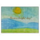 Serve up smiles and sunshine with this beautiful glass cutting board, featuring a bright, hand-painted watercolor sun landscape by young artist Nina. The whimsical "naive art" style and cheerful "Have a bright day!" message make it a delightful addition to your morning routine.