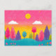 Whimsical Sunset Forest Postcard, Vibrant Illustrated Nature Postcard, Colorful Nature Art, Dreamy pinky Sunset and Trees