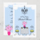 © 2013 Socialite Designs. A whimsical tea party invitation design which includes a floral tea set, damask tablecloth and chandelier.