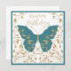 Celebrate someone special with this elegant butterfly Happy Birthday greeting. Featuring a graceful teal butterfly accented with gold floral details, this design blends modern style with a nature-inspired touch. Perfect for friends, family, or coworkers, this whimsical yet sophisticated design makes a memorable way to share birthday wishes. Ideal for anyone who loves butterflies, florals, and unique artistry.