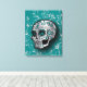 Whimsical Teal and Silver Sugar Skull Canvas Print