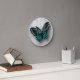 Whimsical Teal Butterfly on Gray Floral Round Clock