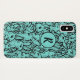 Whimsical Teal Rabbit Bunny Drawing Monogram Case-Mate iPhone Case