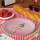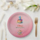 This is a pastel-themed birthday paper plates featuring a dreamy sky background with soft clouds. At the centre, there is a colourful cake with a large number "1" candle, symbolising a first birthday celebration. Cute teddy bear illustrations decorate the corners, adding a playful touch. The text invites guests to celebrate a child's first birthday. Perfect for a whimsical and adorable first birthday party invitation. Customise for a personal touch!