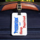 The back of this customisable design features a black silhouette of an aeroplane on a white background. Add your name to personalise this whimsical luggage tag! The front of this fun design features red and blue text that reads: "Pressurised and Sleep Deprived". This unique luggage tag makes a great gift for that flight attendant or pilot in your life!