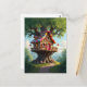 A whimsical treehouse constructed entirely from oversized, colourful candies and lollipops, nestled high within a giant, ancient tree. Intricate details showcase gummy worm vines and peppermint bark windows.