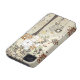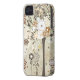 This case mate iphone 4 cover has a neutral brown, red, pewter grey, and tan whimsical nature floral pattern in the background with a tree that is covered in many flowers on the right.