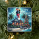 Whimsical Tropical Christmas Lighthouse Teal Red Ceramic Ornament