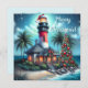 Whimsical Tropical Christmas Lighthouse Teal Red Holiday Card