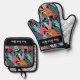 Whimsical Tropical Floral Leaf Print Oven Mitt & Pot Holder Set