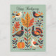 Whimsical Turkeys & Folk Art Leaves Thanksgiving Holiday Postcard