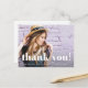 Simple and whimsical graduation thank you postcard features white typography and one full photo on the front, and a thank you message with return address on the back.