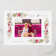 Whimsical Typography Red and Pink Shades Flowers Photo Metallic Foil Save the Date Card with Envelope.