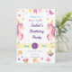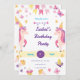 A whimsical unicorn-themed birthday party invitation featuring pastel colours, playful illustrations of unicorns, cupcakes, butterflies, and stars. Designed with a magical, child-friendly style perfect for a young girl's celebration.