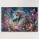 Whimsical Unicorn In Floral Forest Jigsaw Puzzle
