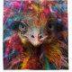 This shower curtain design features a vibrant and whimsical close-up of a wackadoodle bird ostrich, surrounded by an explosion of colourful feathers. The feathers showcase a striking mix of bright pinks, blues, yellows, and oranges, creating a bold and cheerful aesthetic. The ostrich’s expressive eyes and quirky expression add charm, humour, and personality to the design. This playful and captivating composition is perfect for bringing a fun, lively touch to any bathroom decor.
