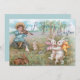 Whimsical Vintage Dancing Easter Bunnies Holiday Card