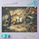 A whimsical steampunk lion wearing brass-fitted spectacles and a top hat contemplates mechanical mysteries. The deep background creates dramatic contrast for the metallic accents and industrial elements. Perfect for sophisticated crafting, vintage-style decoration, and professional paper art.