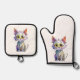 Whimsical Watercolor Cat Oven Mitt & Pot Holder Set